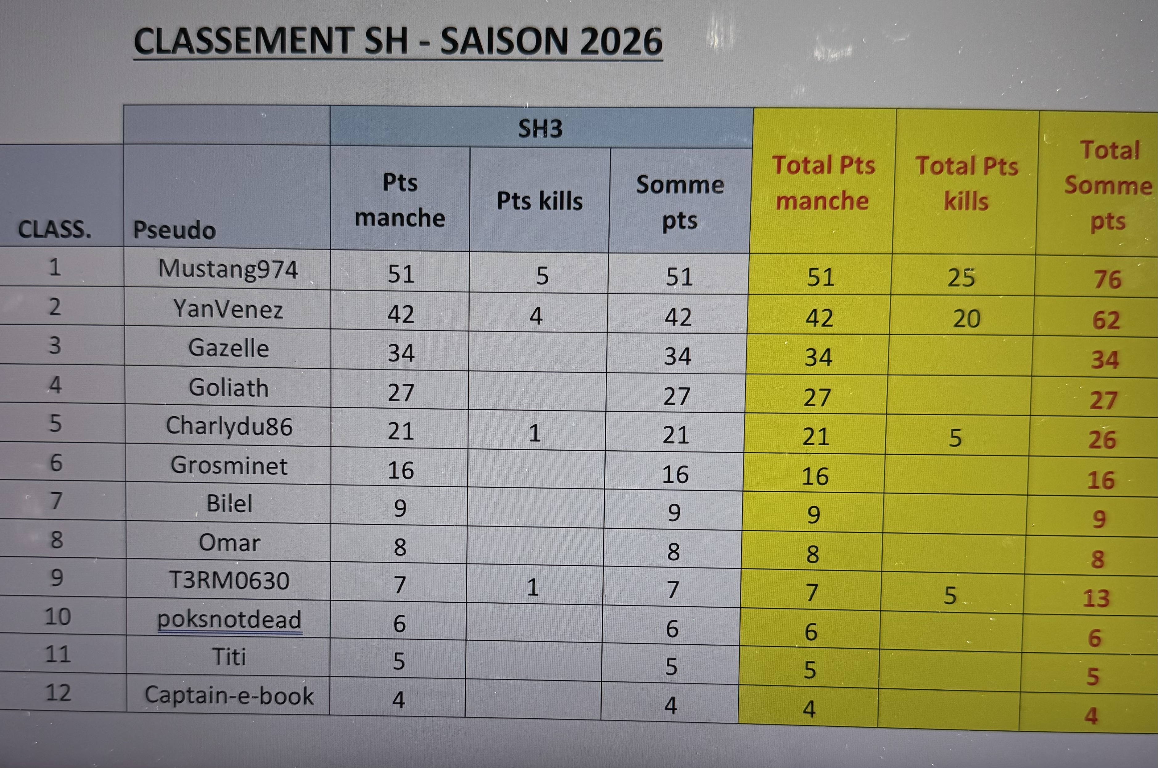 Classement du jour SH 03