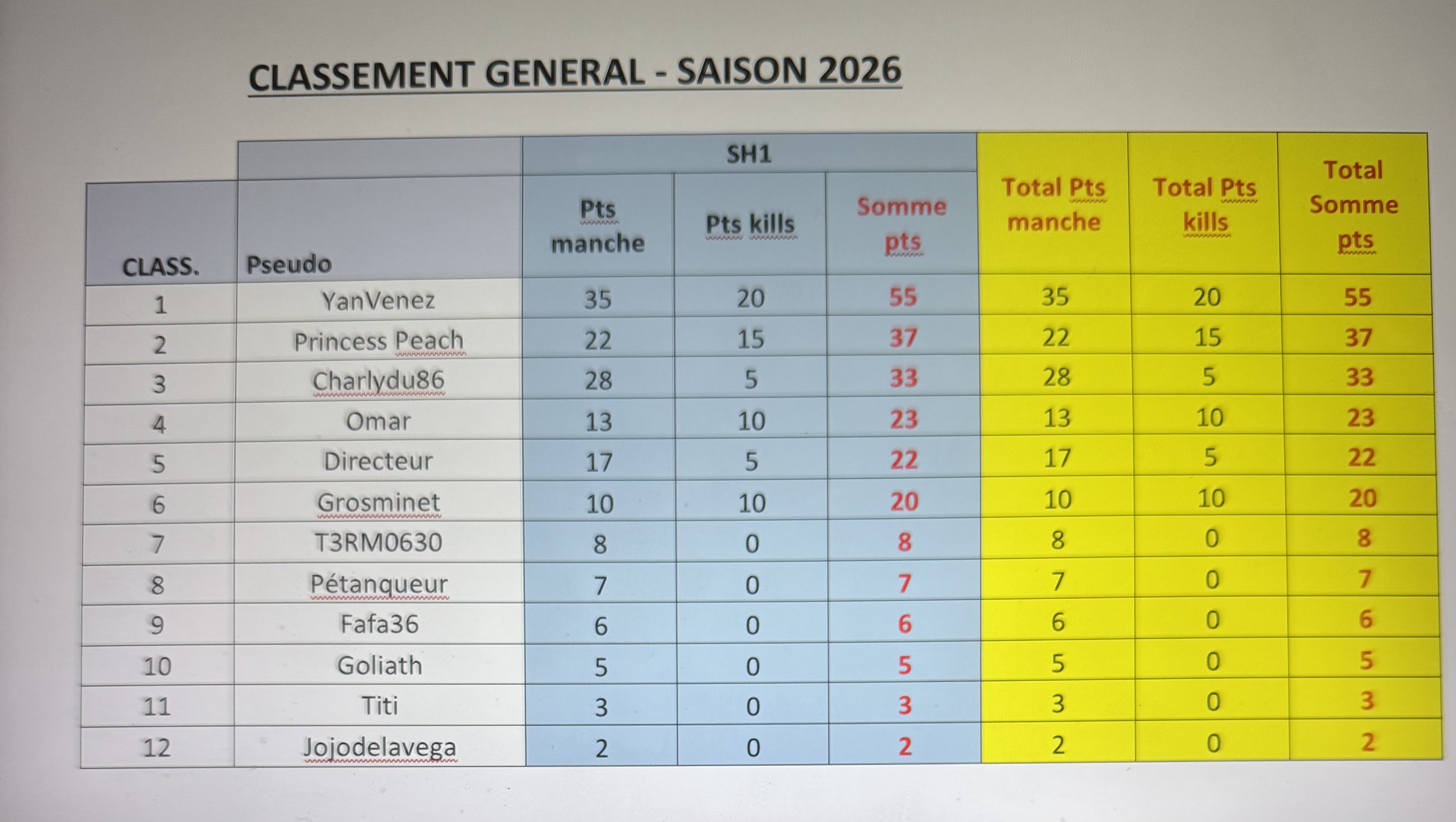 Classement saison 2026