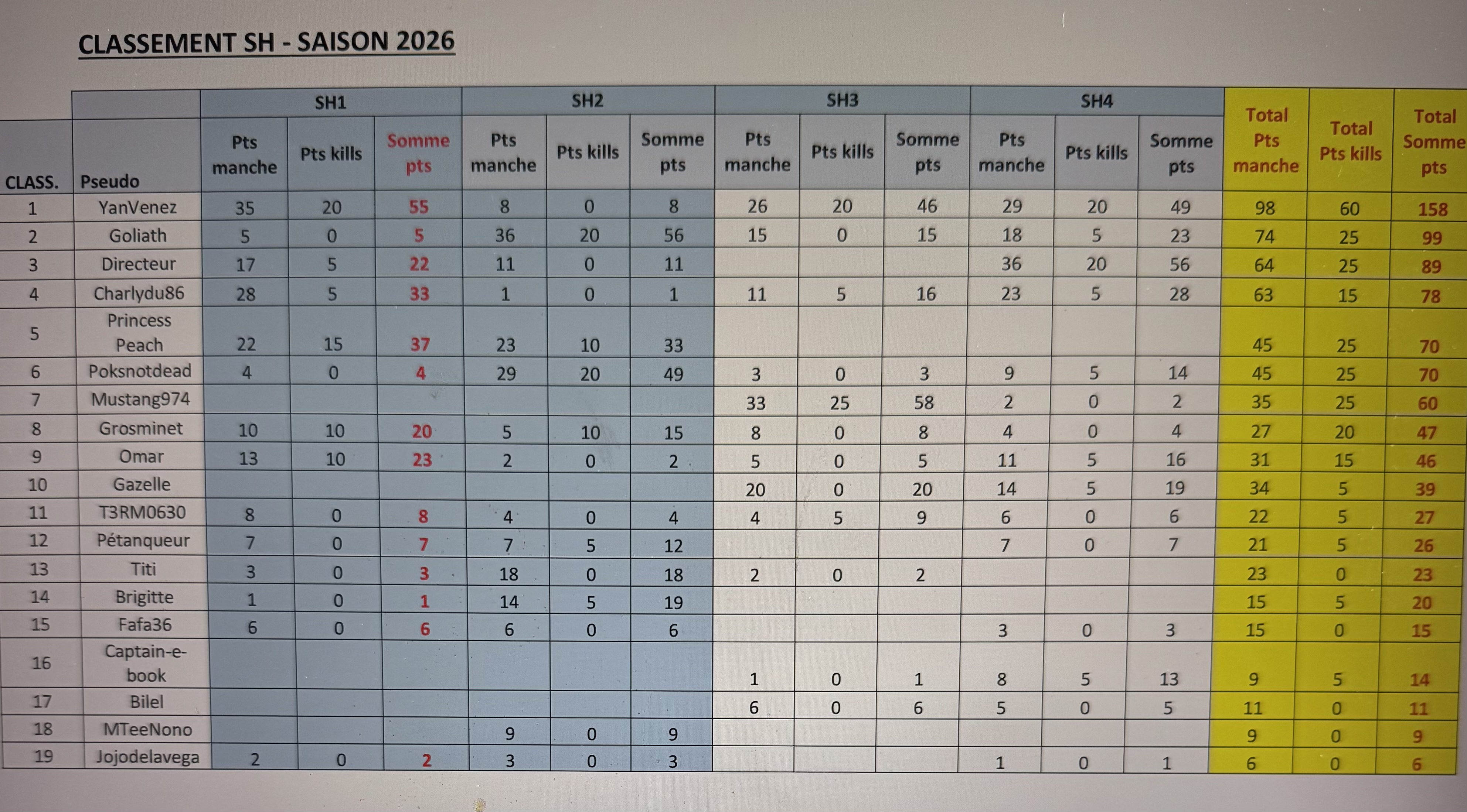 Classement général 2026